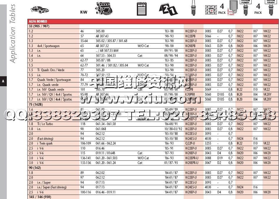 2009电装DENSO火花塞配件目录(英文)详细资料