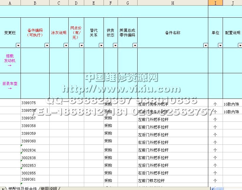 2007-2011中华新尊驰配件目录(无图)详细资料