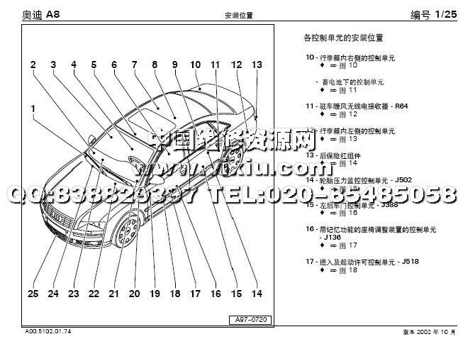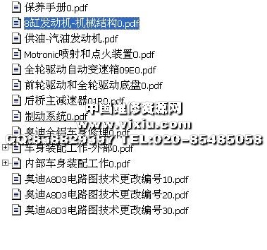 奥迪A8汽车原厂维修资料手册详细资料