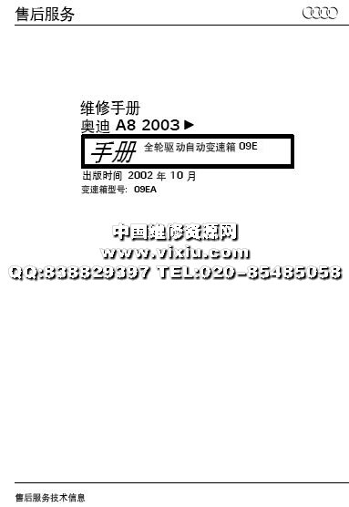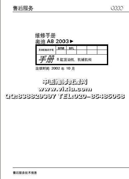 奥迪A8汽车原厂维修资料手册