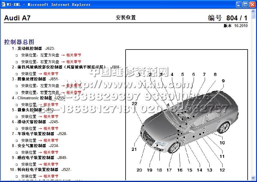 2012款奥迪A7维修手册/电路图资料系统