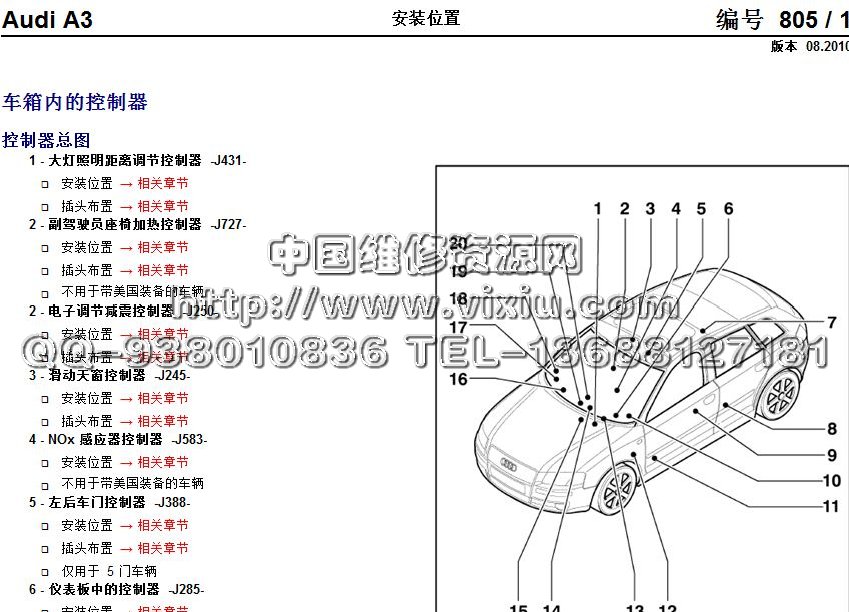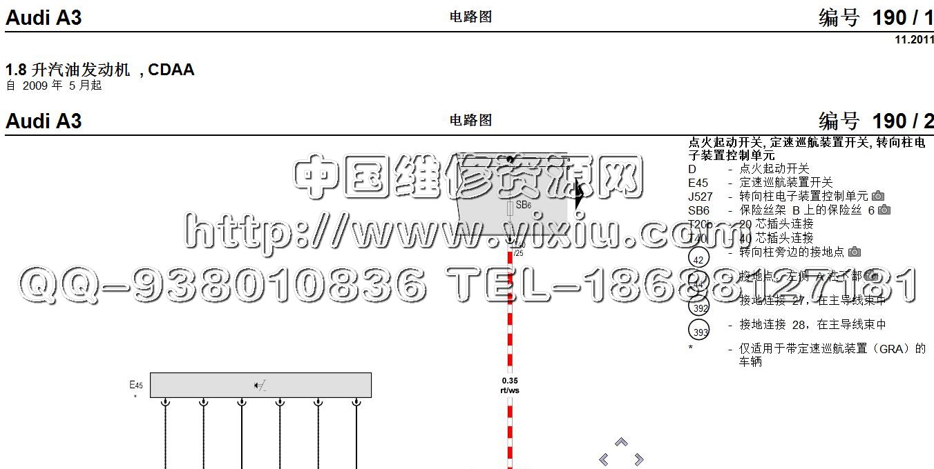 2009-2012款进口奥迪A3维修手册 带电路图维修资料详细资料