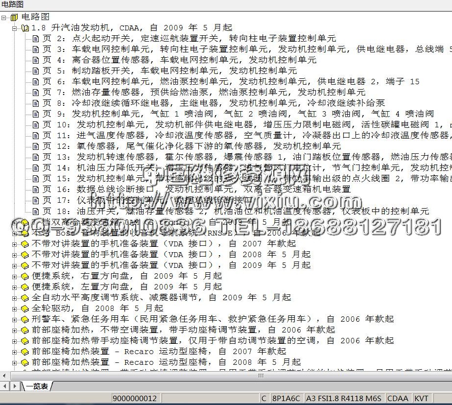 名 称: 2009-2012款进口奥迪A3维修手册 带电路图维修资料