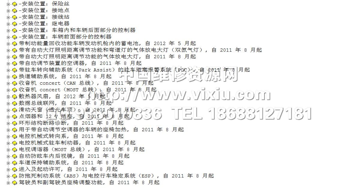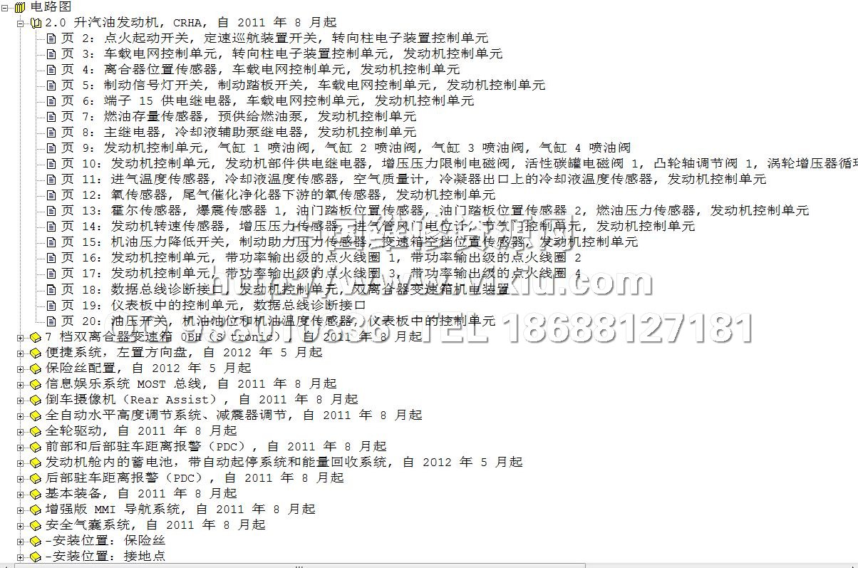 最新上市Q3维修手册,电路图资料ELSA 4.0 2013系统,包括其他A1-A8,Q5Q7,R8,TT等车型维修手册,电路图