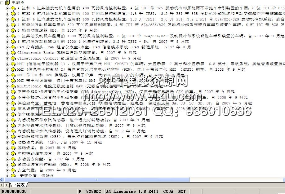 原厂奥迪维修资料,包括维修手册,全车电路图,电器元件位置图,保养手册,车身修理手册等信息,本车型和奥迪其他车型如A1,A3,A4L,A5,A6L,A8L,Q3,Q5,Q7,TT,R8等车型的维修手册是一起的,买一个车型的资料,同时也买了奥迪国产及进口全系列车型的维修资料。资料为软件形式,全部数据23GB,6DVD快递。包安装能使用,送注册机和安装视频。