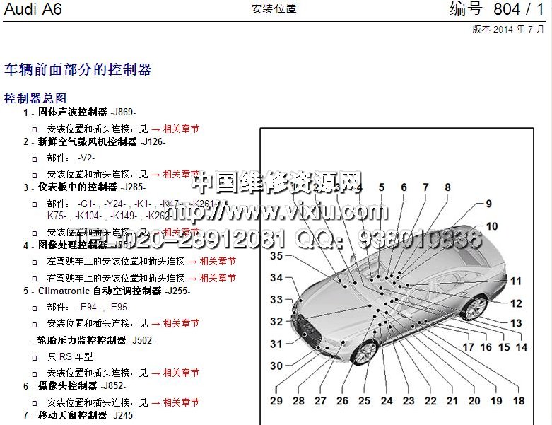 2011-2015款奥迪A6L汽车维修手册带电路图资料 |