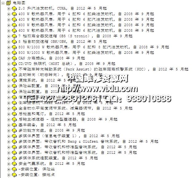 原厂奥迪维修资料,包括维修手册,全车电路图,电器元件位置图,保养手册,车身修理手册等信息,本车型和奥迪其他车型如A1,A3,A4L,A5,A6L,A8L,Q3,Q5,Q7,TT,R8等车型的维修手册是一起的,买一个车型的资料,同时也买了奥迪国产及进口全系列车型的维修资料。资料为软件形式,全部数据23GB,6DVD快递。包安装能使用,送注册机和安装视频。