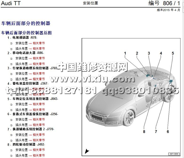 名 称: 2015-2016款奥迪TT跑车维修手册带电路图资料