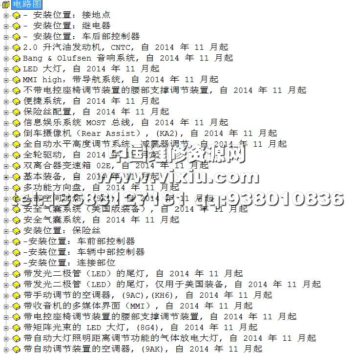 资料大小26.4GB,本资料系统包括维修手册(主要是拆装,结构分解,没有电气故障诊断内容)、电路图(包括线路图、元件位置、端子分布)、保养手册、车身维修等资料。除本车型以外,该系统还包括所有一汽奥迪,进口奥迪截止2016年的所有车型维修资料。该系统不可拆分,整体安装。该处报价为网络下载后远程安装的价格,如需光盘版本,须另加100元。