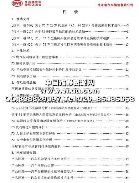 比亚迪F3维修技术通报详细资料