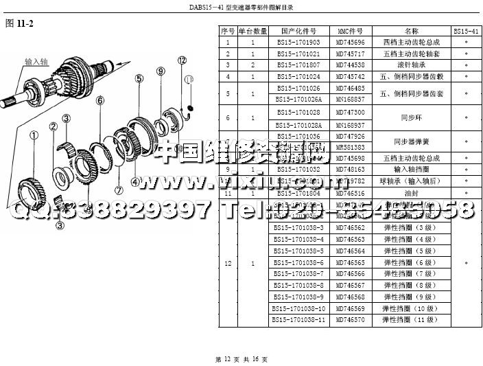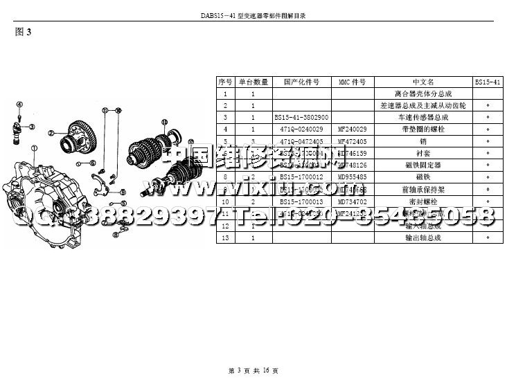 比亚迪F3 DS15-41变速箱配件目录详细资料