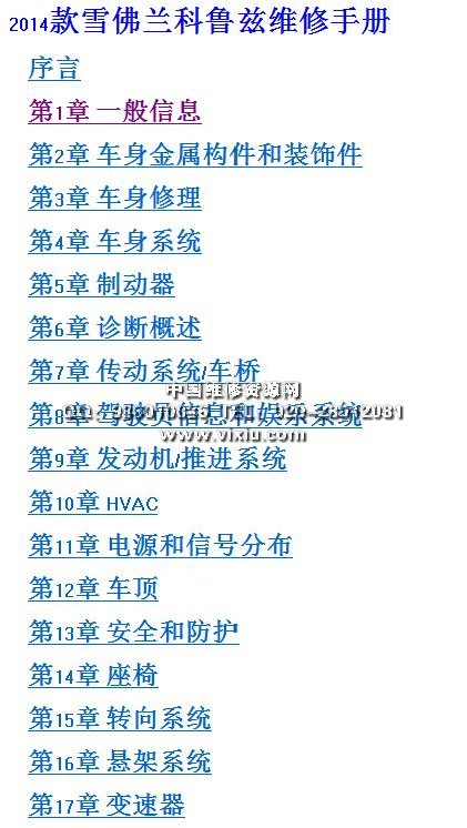 2014款雪佛兰科鲁兹维修手册带电路图维修资料详细资料