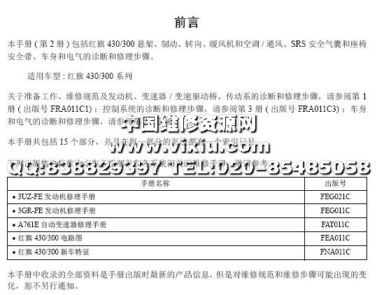 一汽红旗盛世HQ3维修手册(2)详细资料