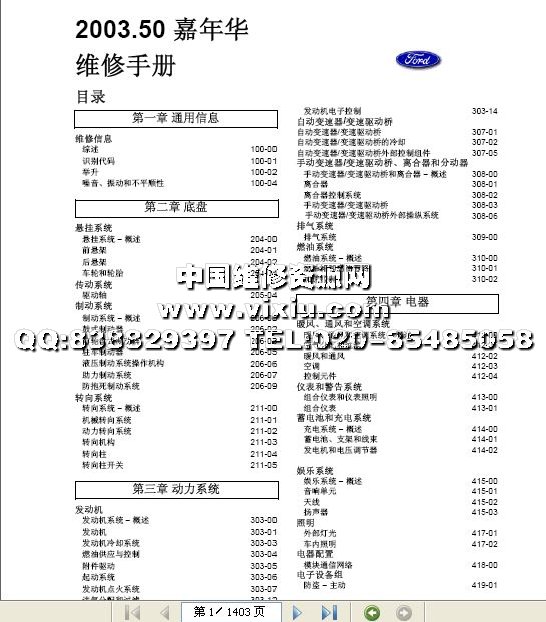 2003福特嘉年华维修资料手册