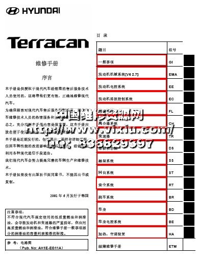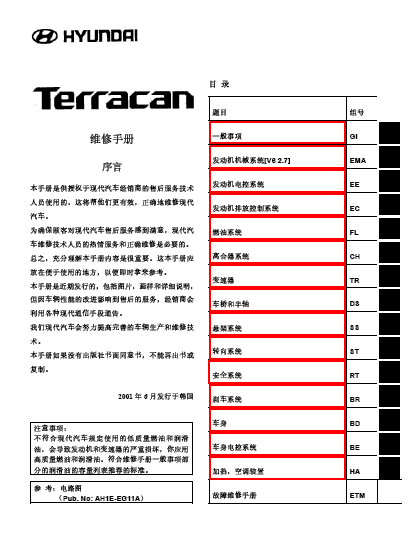 华泰现代特拉卡原厂维修手册