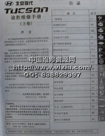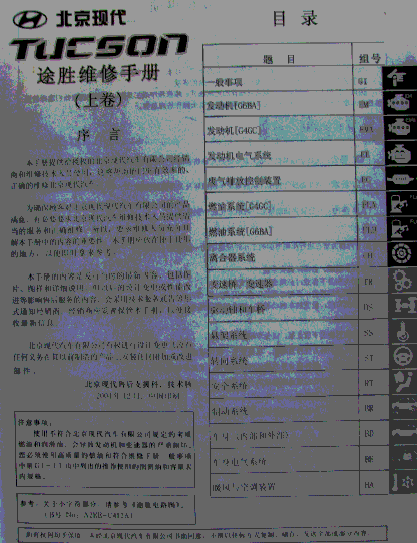北京现代途胜原厂维修手册