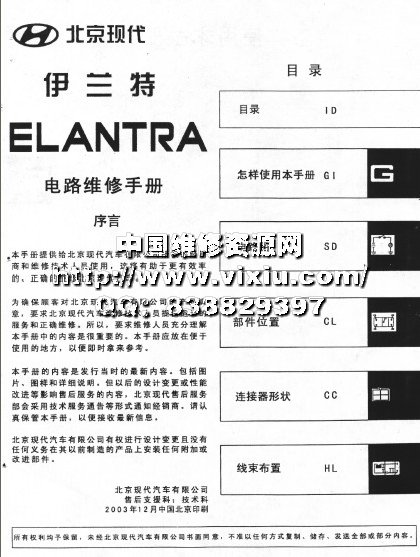 北京现代伊兰特原厂电路维修手册详细资料