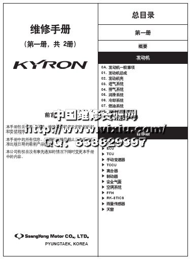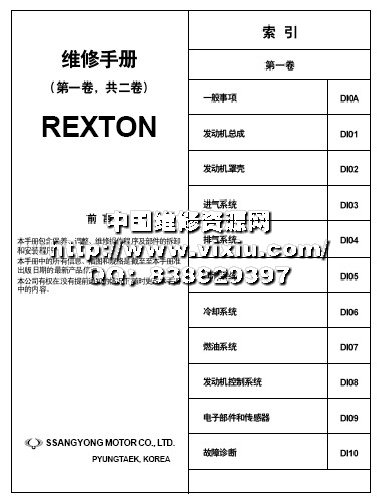 双龙雷斯特REXTON原厂维修手册(有电路图)