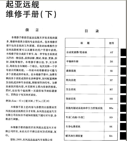 2009东风悦达起亚福瑞迪1.6L维修手册