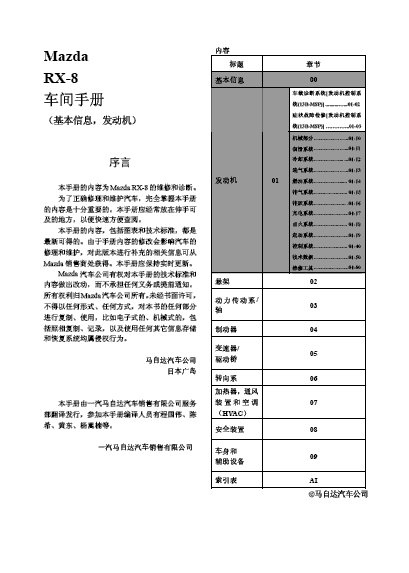 马自达RX-8维修资料手册详细资料