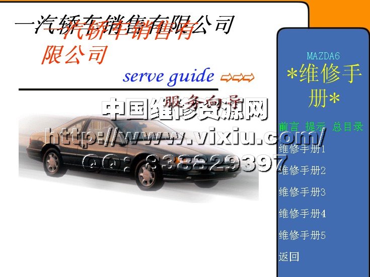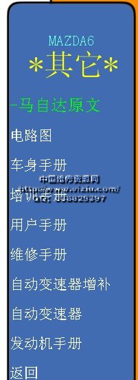 一汽马自达6原厂中文维修手册(全套有电路图)