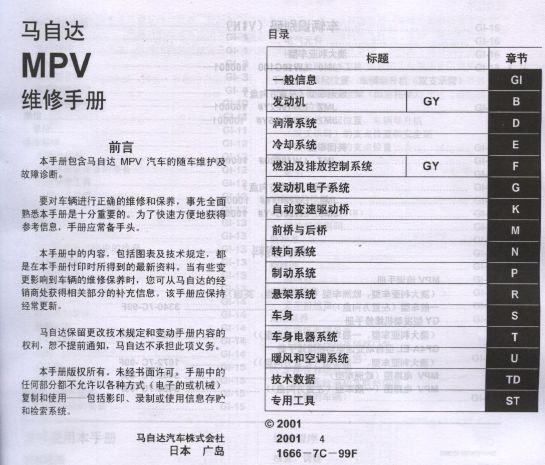 马自达MPV维修资料手册详细资料