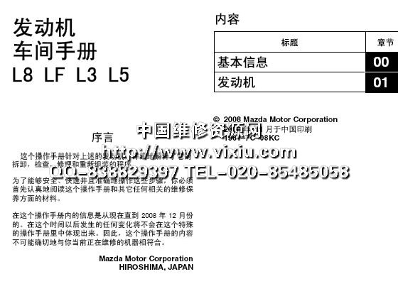 2009一汽马自达6睿翼发动机车间手册详细资料