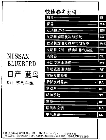 日产蓝鸟U13汽车原厂维修资料手册详细资料