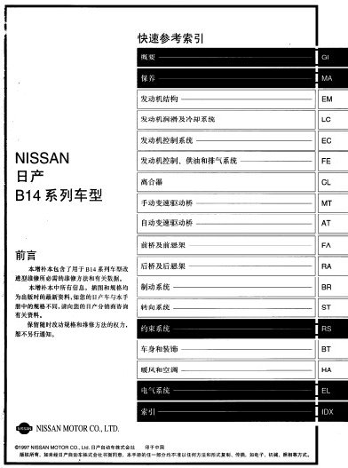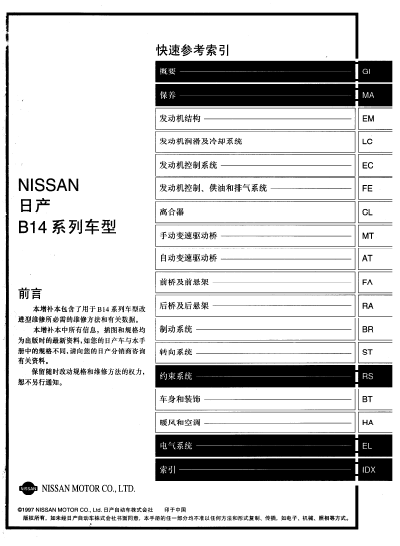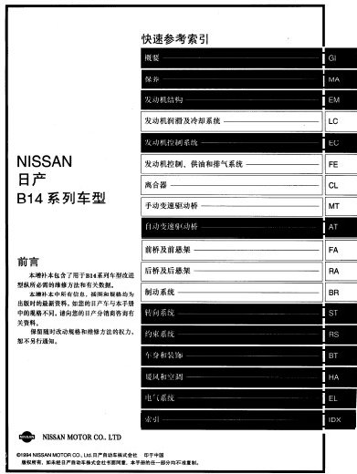 2013款东风日产新骊威维修手册 带电路图维修资料