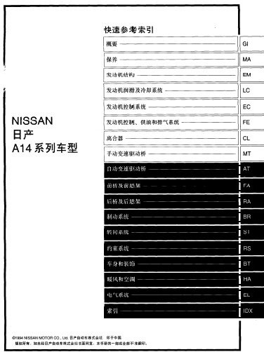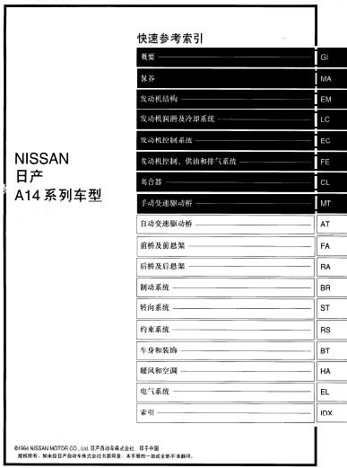 2013款东风日产新天籁维修手册 带电路图维修资料