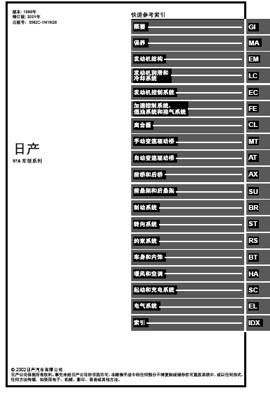 日产阳光N16原厂维修资料手册