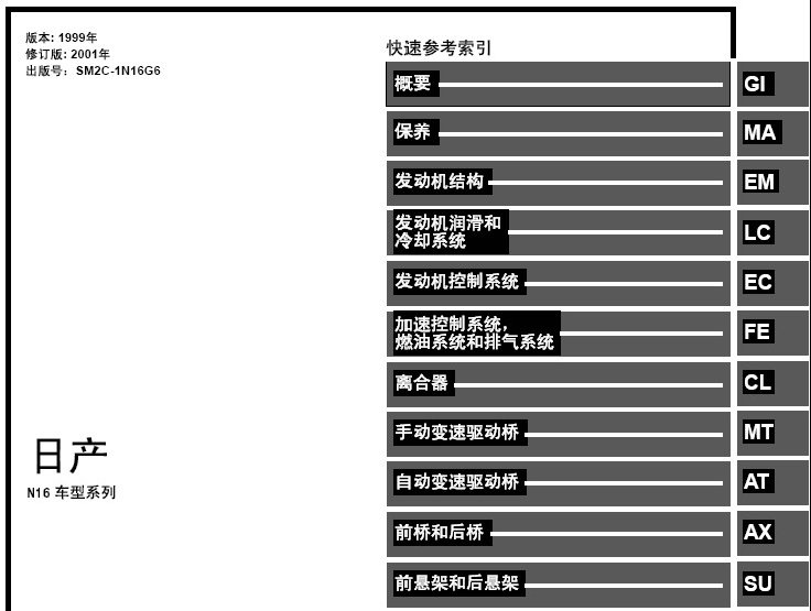 日产阳光N16原厂维修资料手册详细资料