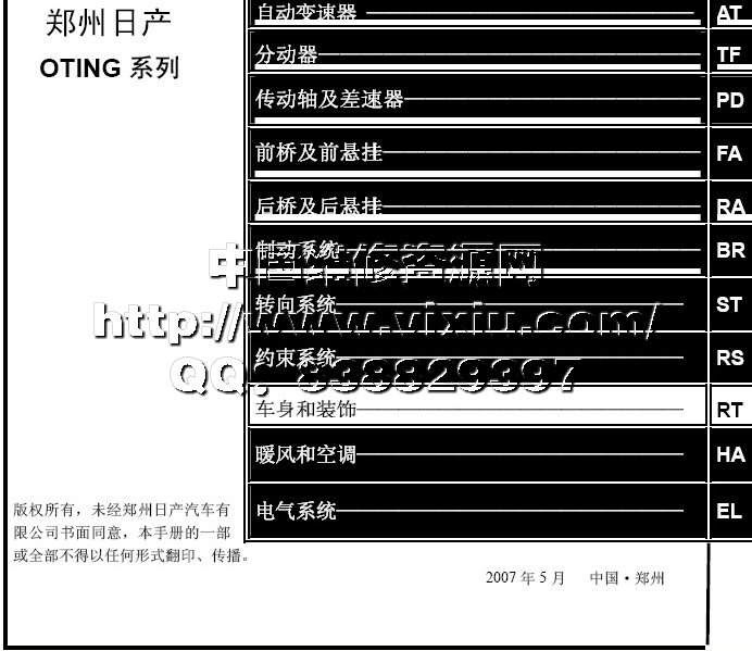 2013款东风日产新天籁维修手册 带电路图维修资料