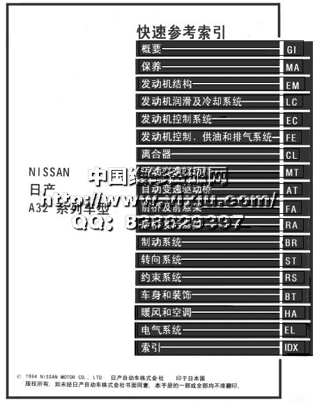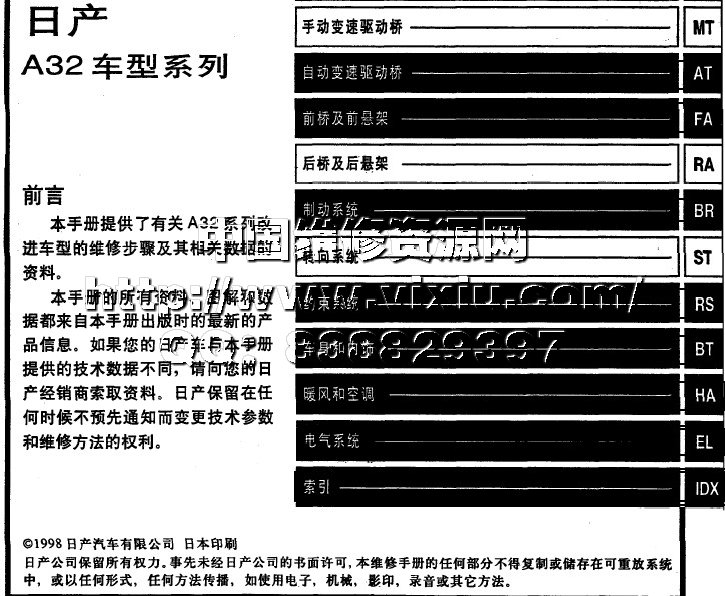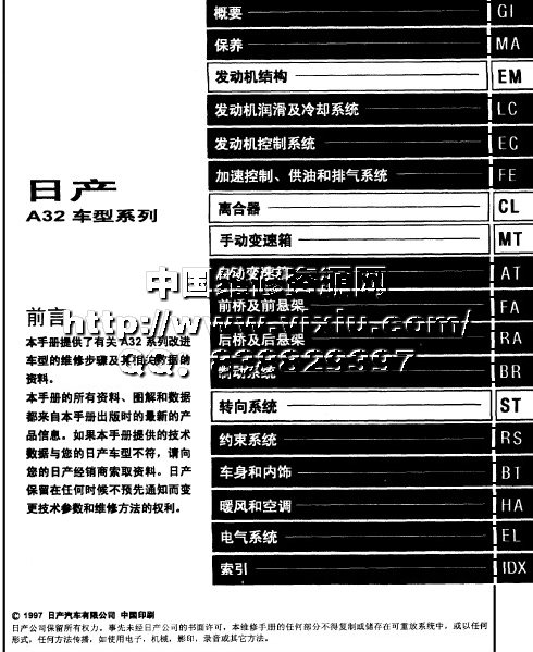 2013款东风日产新天籁维修手册 带电路图维修资料