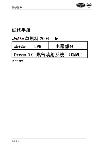 一汽大众捷达LPG汽车维修资料手册