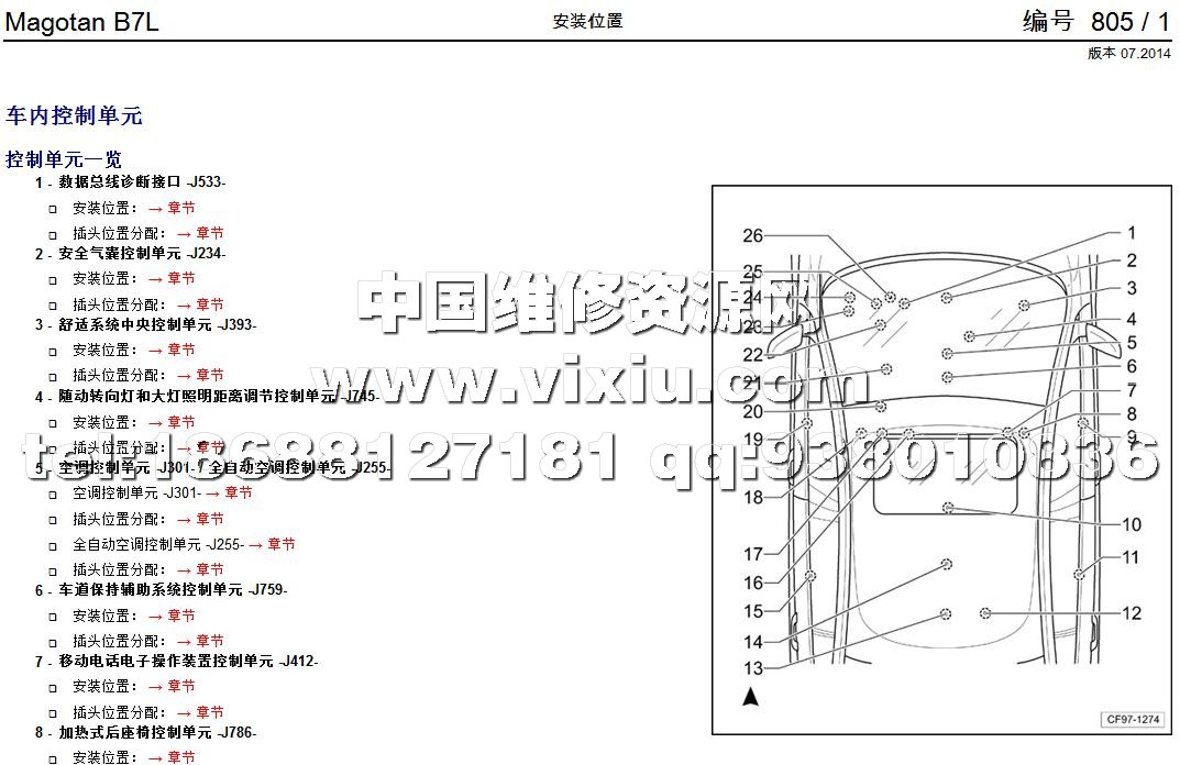 名 称: 2012-2016款一汽大众全新迈腾汽车维修手册电路图维修资料