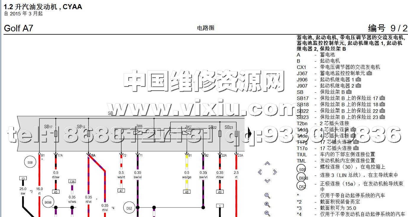 2015年款一汽大众高尔夫A7全车彩色电路图维修资料手册