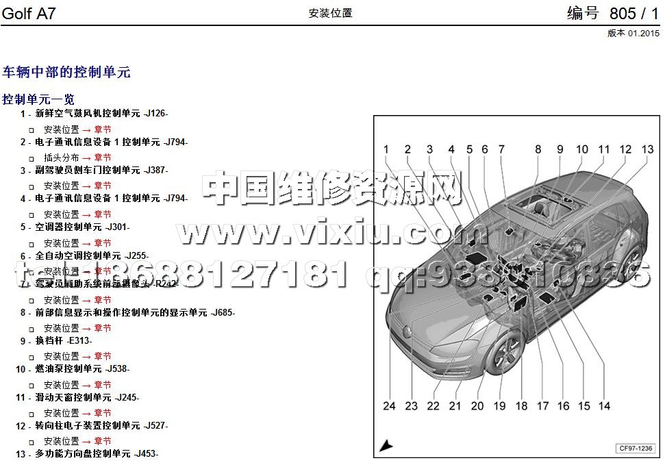 名 称: 2014-2016款一汽大众全新高尔夫A7汽车维修手册带电路图资料