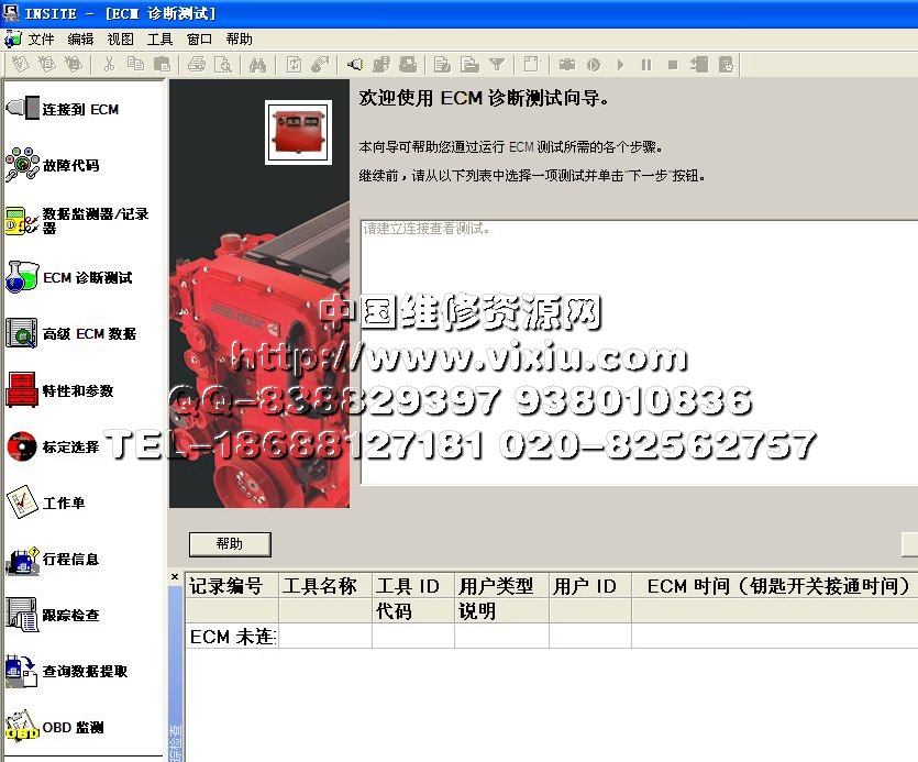 康明斯拥有众多的电控发动机,所有的电控发动机均由电子控制模块(Electronic Control Module ,简称ECM)实时监测、控制。INSITE软件为PC机提供了与ECM接口的一个操作平台。简洁的界面,详尽的功能,会令您兴奋不已。
