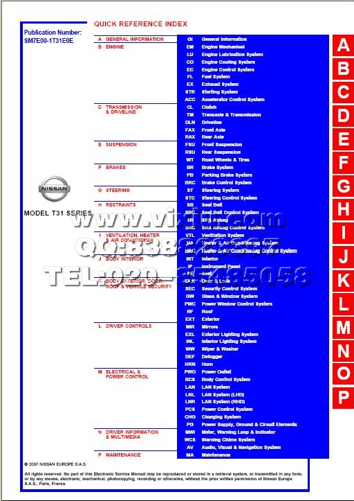 2013款东风日产新天籁维修手册 带电路图维修资料