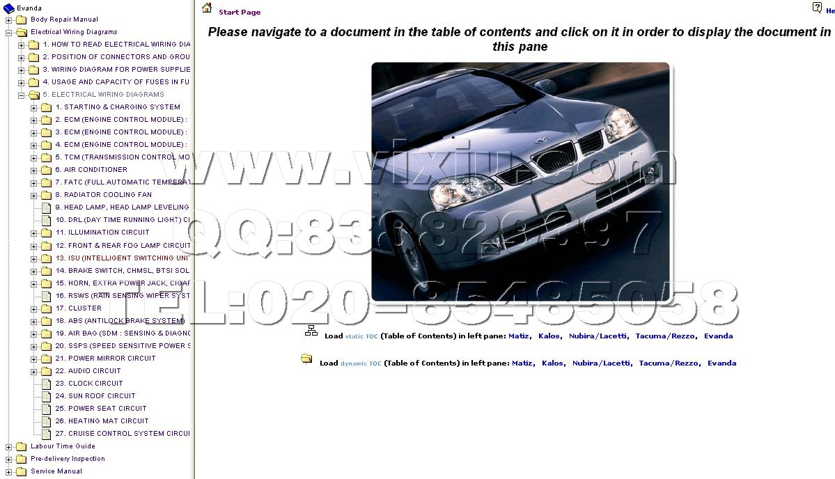 通用大宇汽车维修资料信息系统(欧洲地区)详细资料