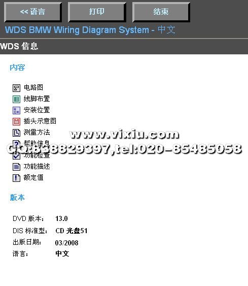 718MB,1DVD,简体中文,包括宝马全车系电路图,线插口图,元件位置图。