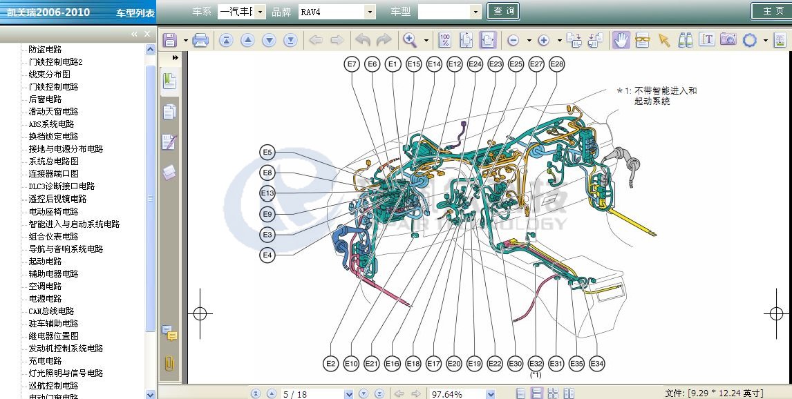 本系统收录了一汽丰田(威驰、花冠、皇冠、锐志、卡罗拉、普锐斯、兰德酷路泽、普拉多、柯斯达等)、广州丰田(凯美瑞、雅力士、汉兰达、逸致)、进口丰田(普瑞维亚、FJ酷路泽、杰路驰、埃尔法等)及雷克萨斯品牌的所有车型的电路图信息,包括接口图、线束分布图等信息。内容全面,信息丰富,真实准确,是维修丰田与雷克萨斯车辆电气系统必备的查询软件。本软件为注册安装版本,一机一号,一年内有新版本,凭购买记录可享受免费升级服务(快递升级版本光盘,邮费到付)。