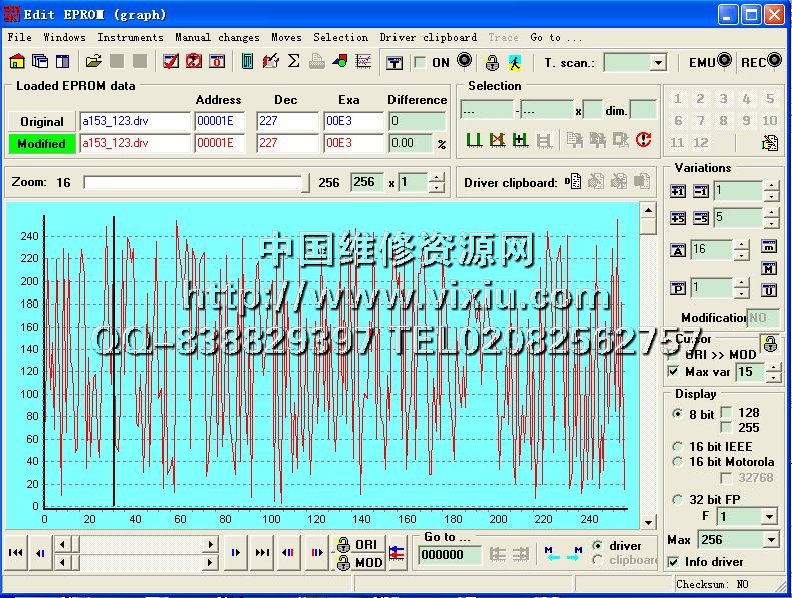 This is a particular form of visualization, it needs the use of drivers. The drivers are software upgrades of ECM2001.These have got all the informations that the software must know to effect a good modify on the Ecu. Practically the addresses and the sizes of the maps, the areas where effect the calculations for checksum and the other informations are into the drivers.The search of these informations isn't competence of the users but ECM2001.